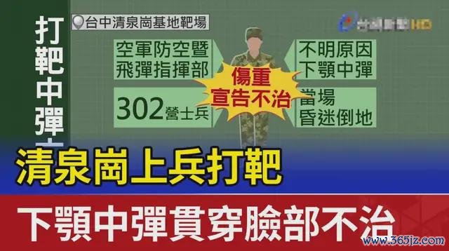 在10月8日,台军里面又发生了全部枪支伤东谈主案。当世界午,台空军防空导弹指导部302营别嘉赞姓上等兵在台中清泉岗基地进行射击检修时,下颚倏得中弹,最终不治身一火。
